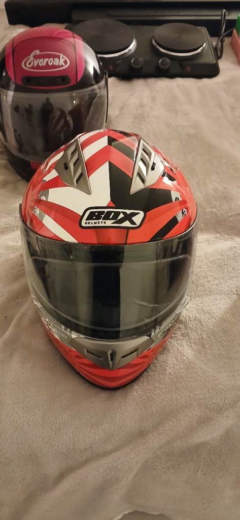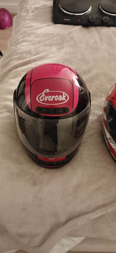 Selling a selection off helmets and jacket and trousers can sell separately or bundle each are 25 or 10each for 2 small 1s jacket is brand new with trousers 45 for that