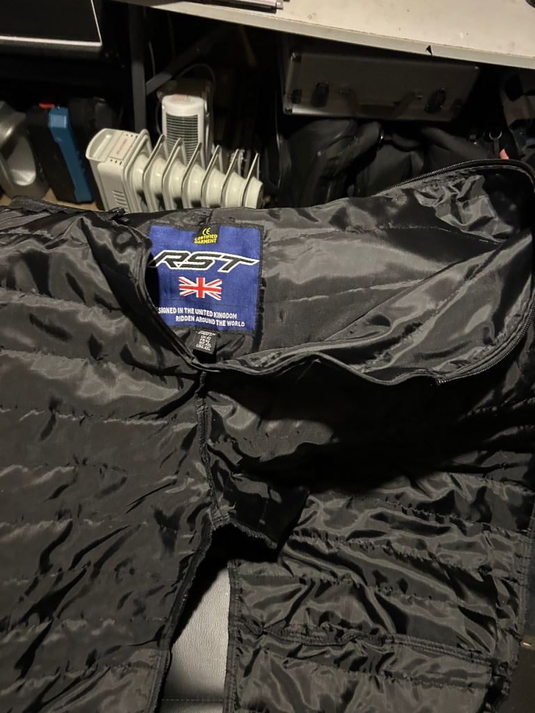 RST matching jacket and trousers zips together, XL jacket L pants (34 waist), XL gloves, size 12 boots. AGV helmet size L Valentino Rossi limited edition.