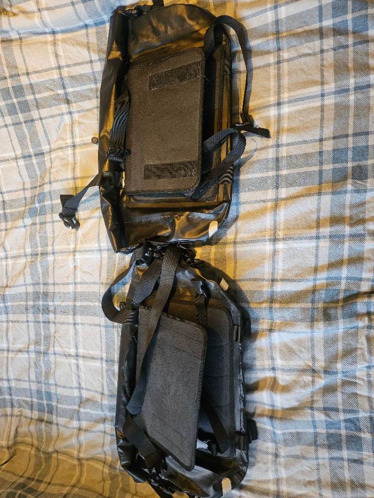 Never been used, brand new with tags. 2x motorbike saddle bags. Watertight and with large storage.