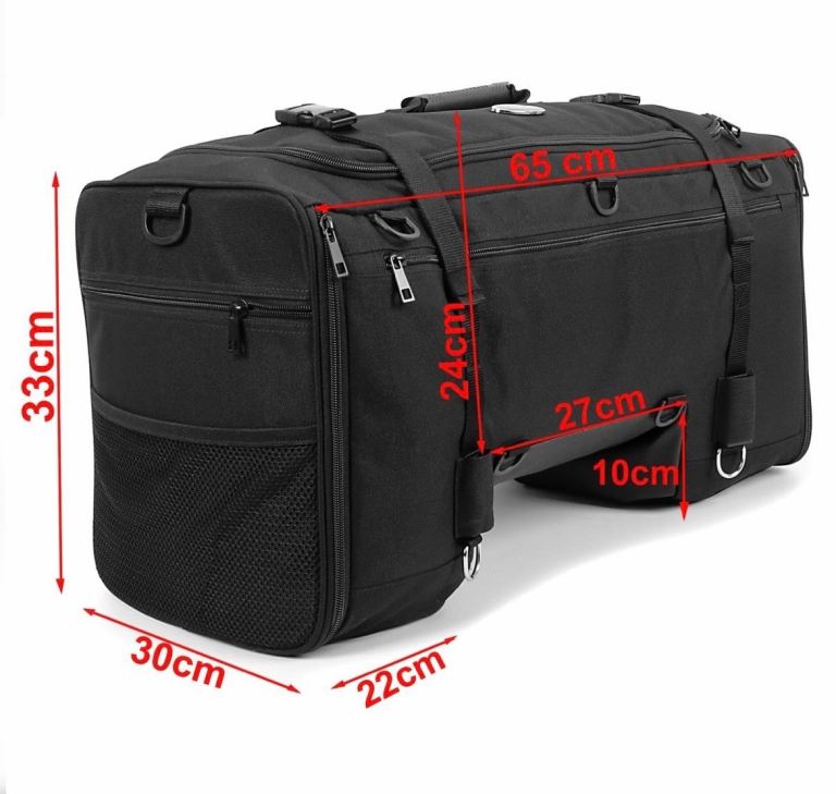 Can be attached as a pillion bag, on motorbike rear ends without passenger seat and on luggage racks