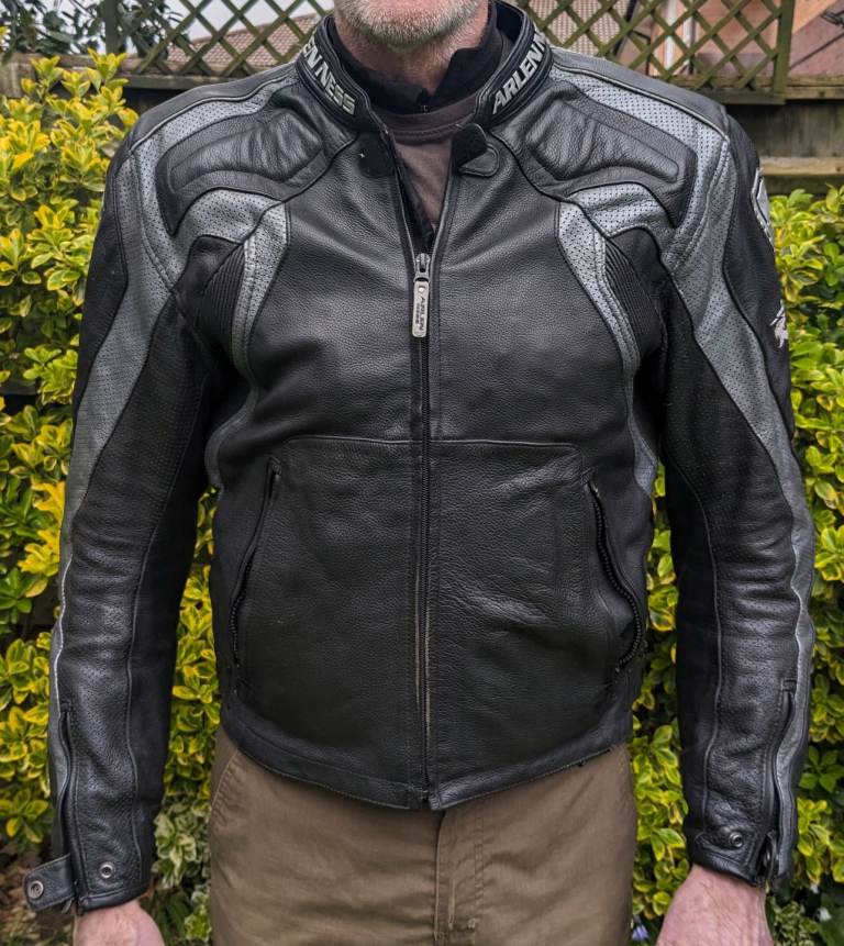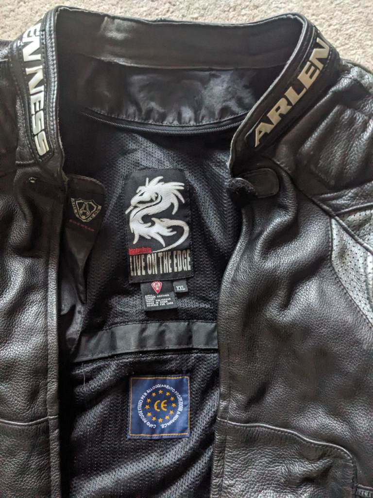 Good condition, CE body armour, zip to join to trousers , size XXL I'm 44inch chest and 6ft 2in and fits me fine