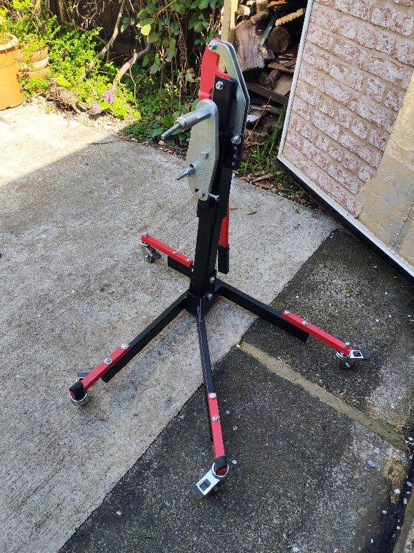 Constands motorcycle lift with adapter for a 2023 BMW m1000r or s1000r.