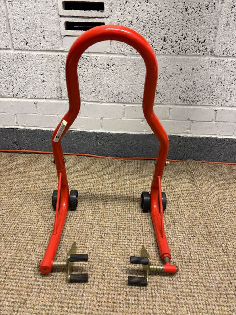 Paddock stand for front wheel, universal fit. Rarely used, in excellent condition.