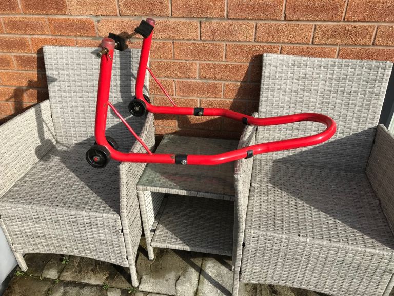 Motorcycle paddock stand heavy duty by warrior in very good used condition.