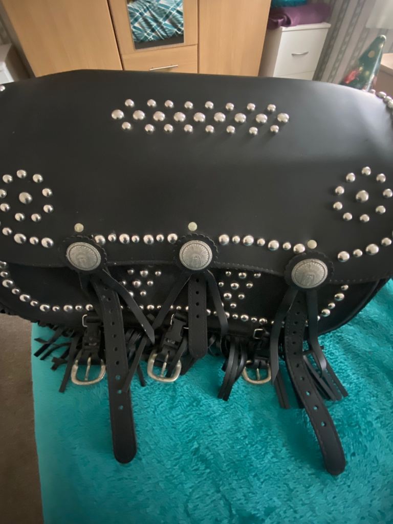 Two Black Leather Saddlebags including fitting brackets for Kawasaki Drifter.