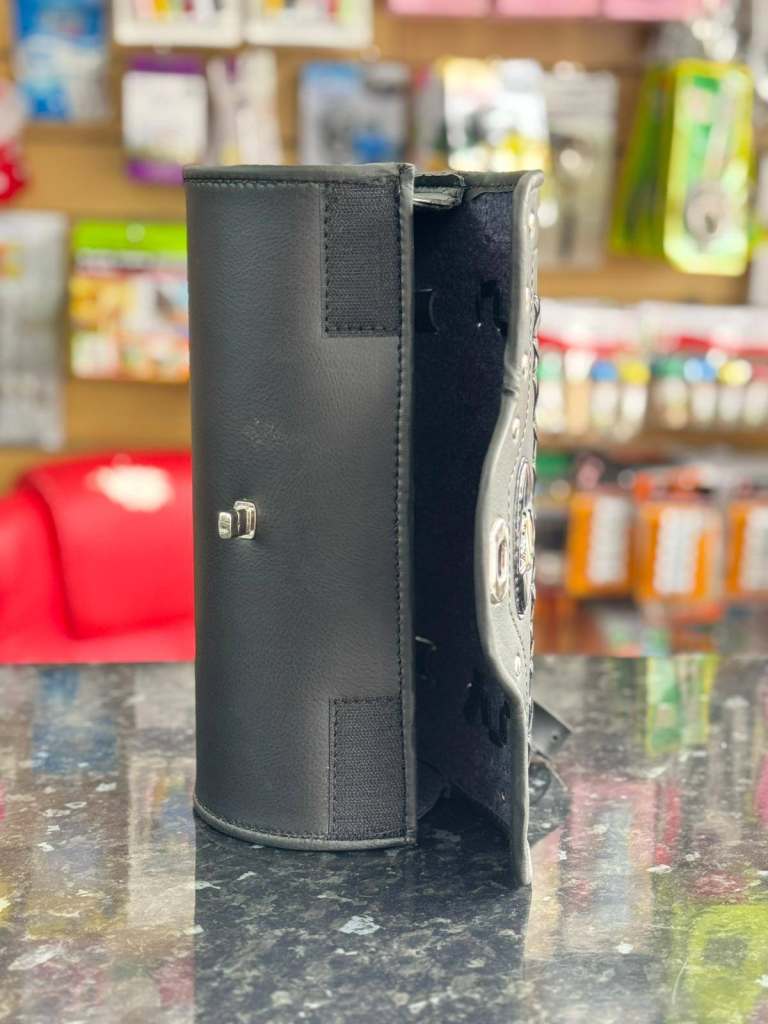 Posting for 2+ monthsMotorcycle Tool Bag – Black Studded Cylinder Pouch with Metal Clasp