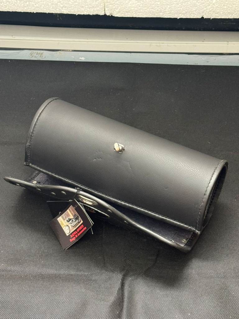 Posting for 2+ monthsMotorcycle Tool Bag – Black Studded Cylinder Saddle Pouch with Metal Clasp