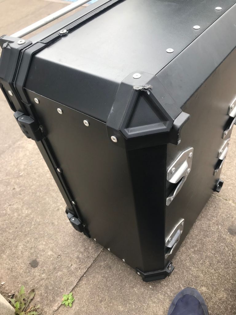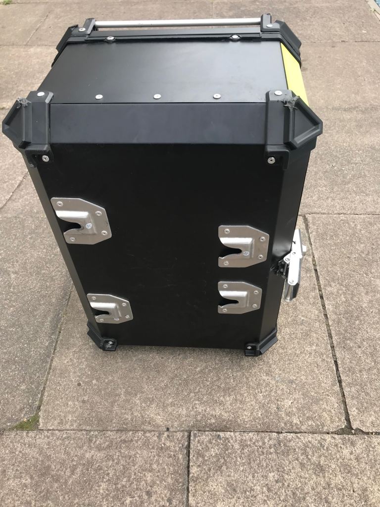 Motorcycle Top Box, Case aluminium 65l. The trunk was used for 4 months. The interior features luxurious trim with two document pockets. A set of two keys for two locks is included. Only the case and keys are for sale. Collection in person is available from nearby Feltham Screwfix or another location in London by prior arrangement. See my other items and appliances for sale.