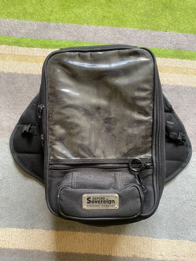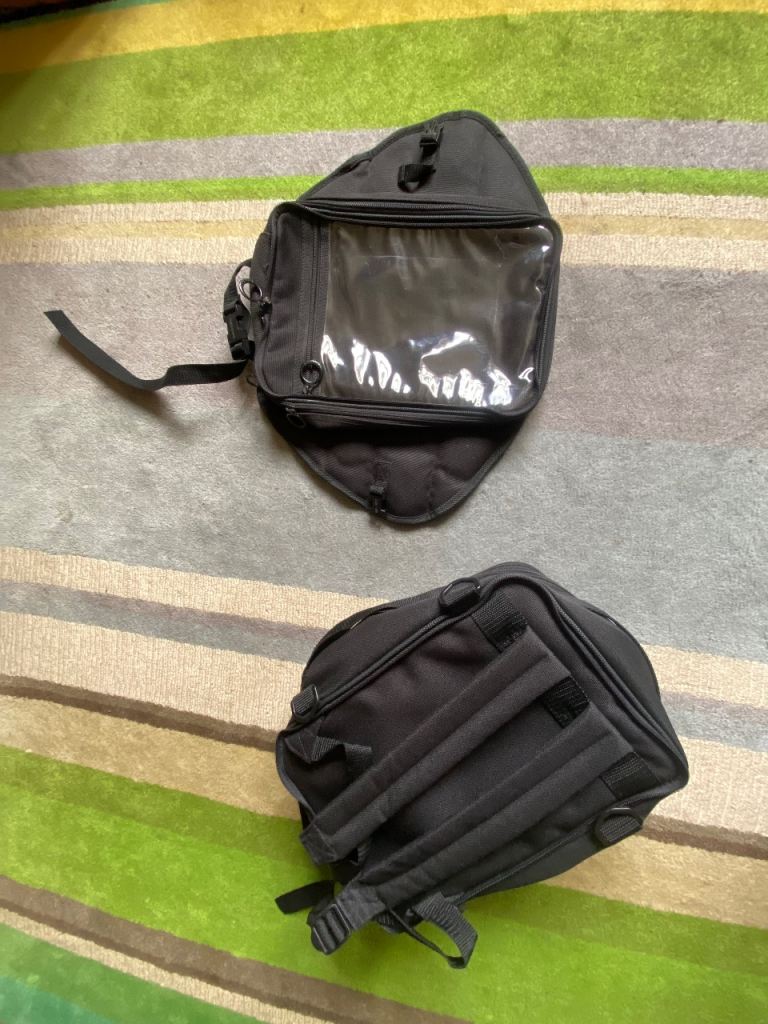 FREE …Used but still in good condition, Magnetic (for metal type petrol tanks) flaps hold bag on top of petrol tank + front strap. FREE