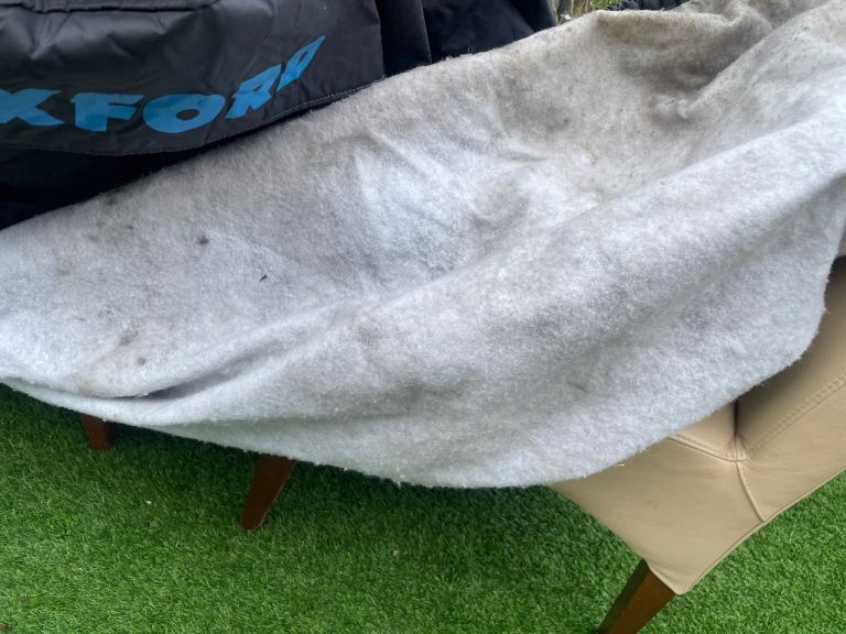 It’s never been used outside, only in the garage to protect my former bike from knocks or stuff falling onto it.