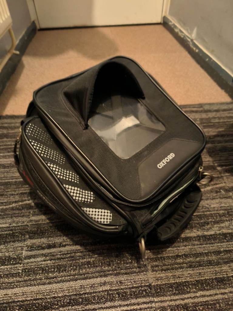 Hardly used as bought an adventure bike so doesn't fit on my new tank. Waterproof bag never used as seen in picture. Genuine sale great price