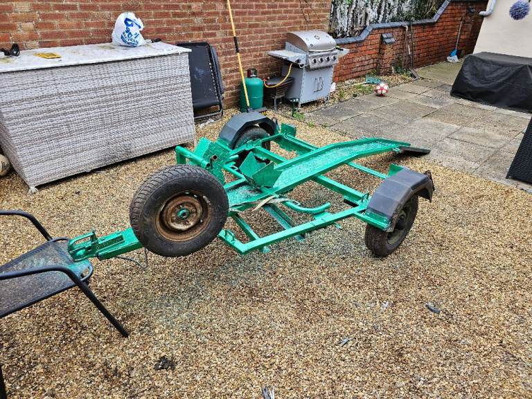 This is an ex recovery motorcycle trailer with the ability to take any bike you want to put on it including the big boys.