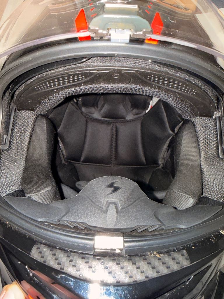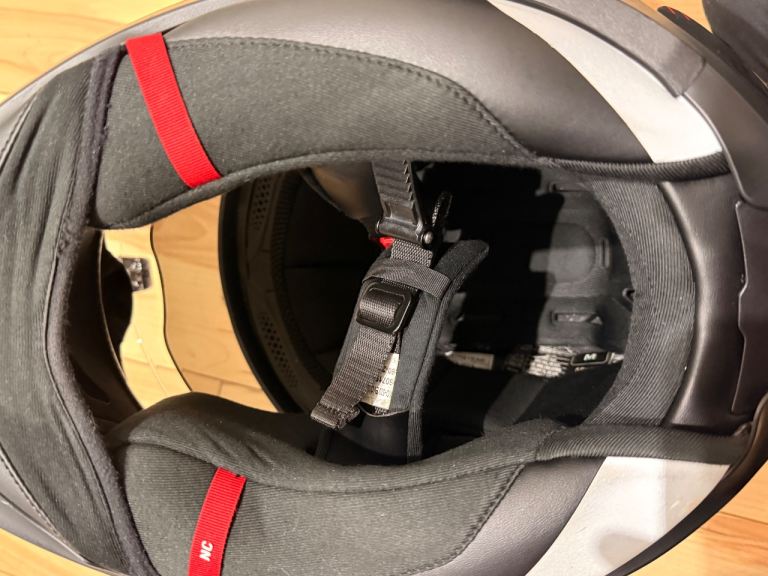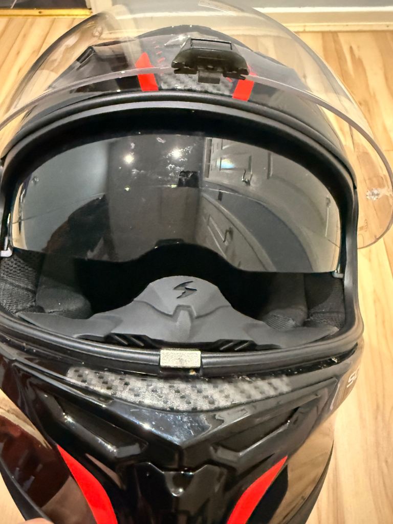 For sale Scorpion Exo 520 motorcycle helmet with a fitted Scorpion intercom.