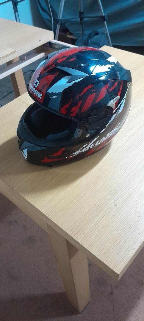 A crash helmet that could do with a new home. Not new and needs a new visor. But just like new inside. Size medium