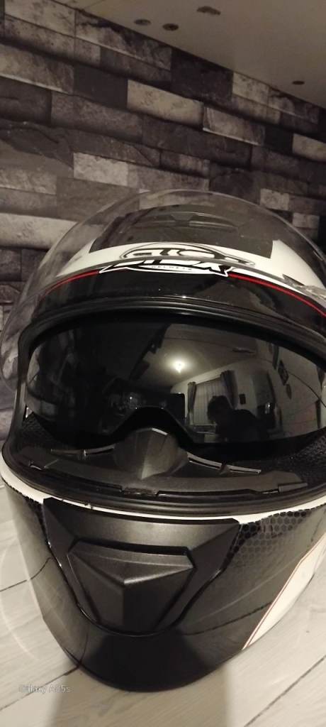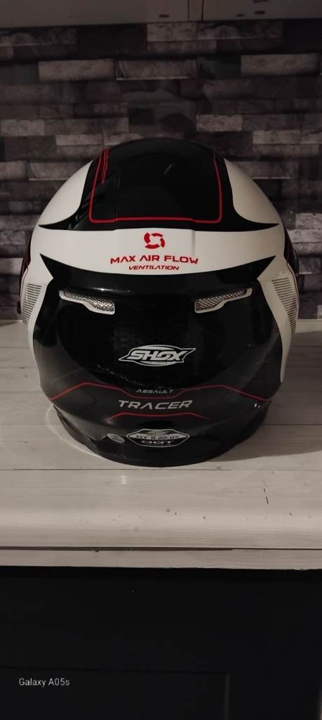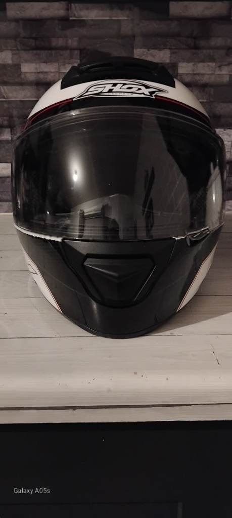 Unused Shox Biker helmet still in box. With it comes a wall mounted helmet stand also in box. Excellent condition.
