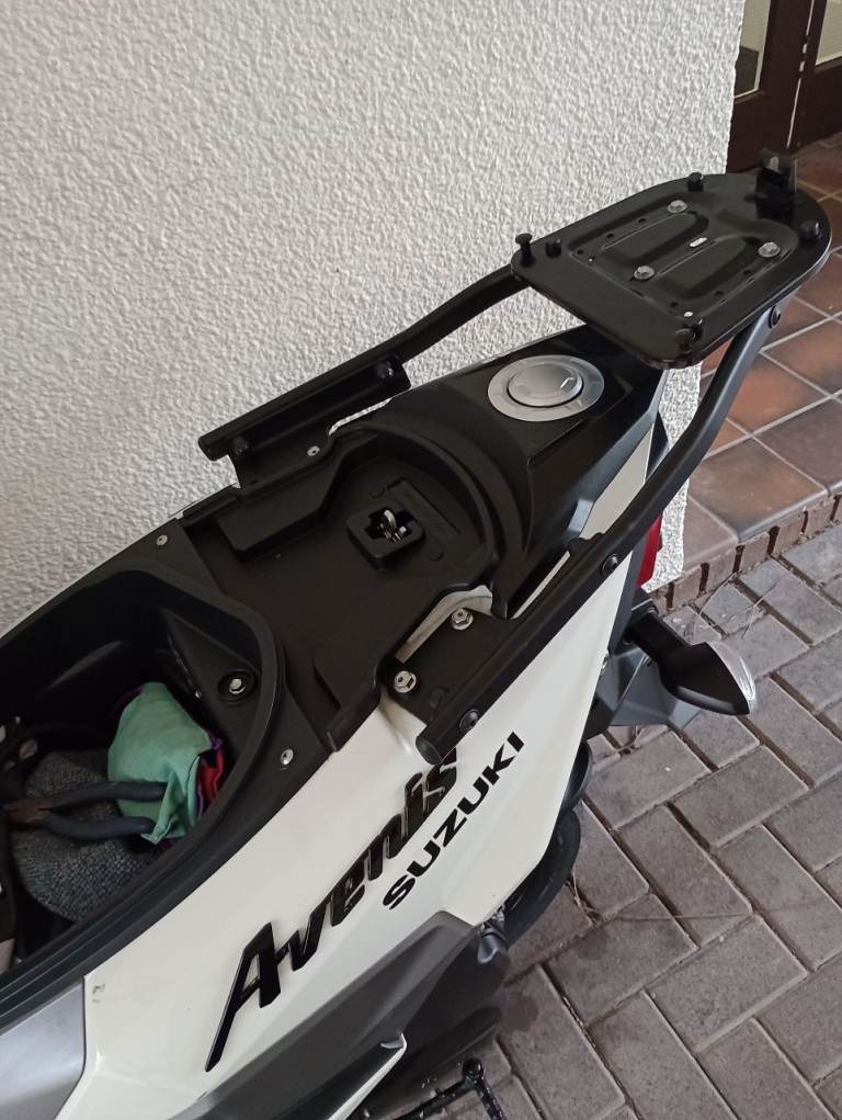 rear rack for a 125 Suzuki Avenis 125 expensive on line .new condition decided not to have a top box . Free top box with this rear rack . It's specially for this bike