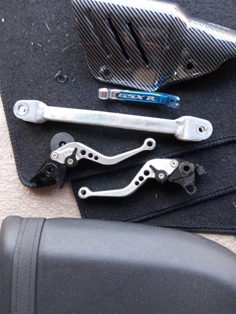 Suzuki GSXR spares double bubble screen short levers never used rear seat mirrors lower fairing V swing arm 2 chain guards open to offers cash on collection, collection only from Stourbridge DY8 black headlight cover & polished brake arm open to offers will split