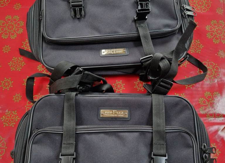 For sale is a set (2) of Moto Fizz expandable soft motorcycle Panniers made by Tanax. This set is new, unused, complete with rain covers & shoulder straps. Collection only please. £50 one.
