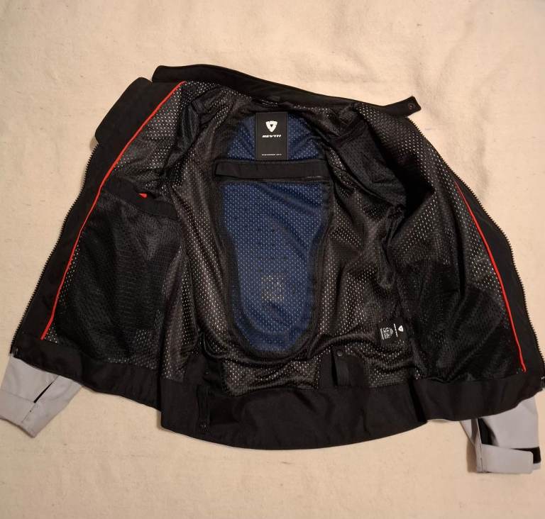 Rev'it textile summer jacket complete with armour on back, shoulders and elbows. Bought new and hardly used, condition like new and well kept.