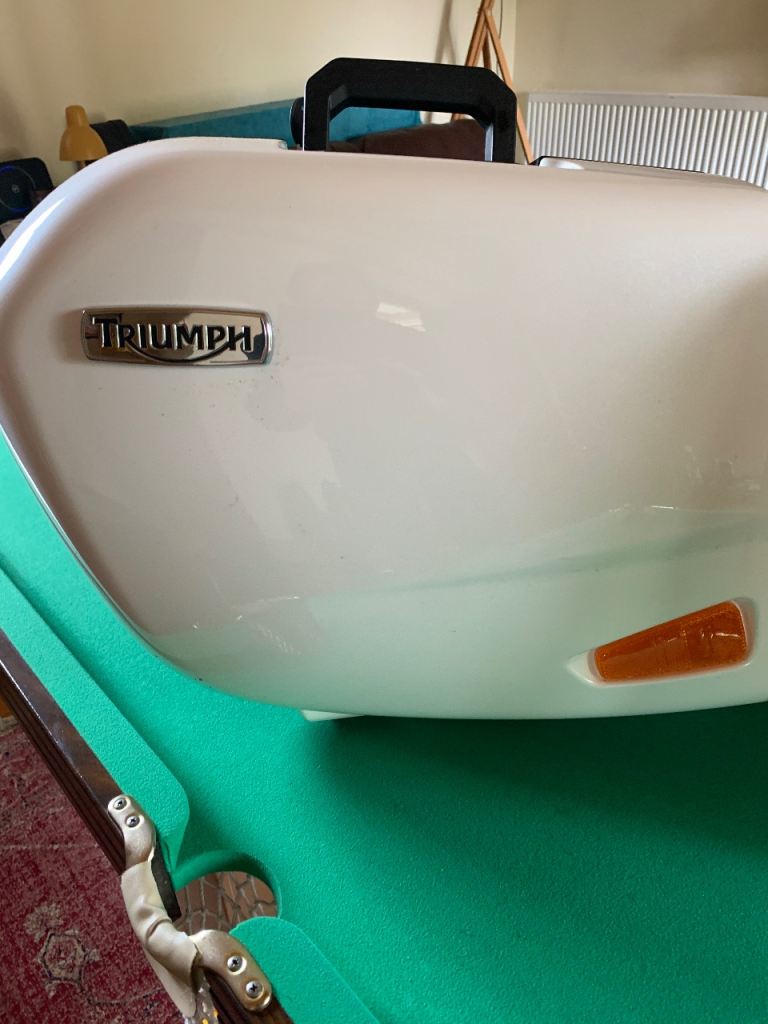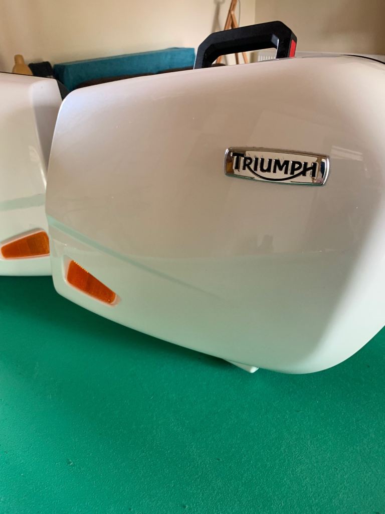 Pair of Triumph side cases with all attachments and fittings. Suit Triumph Tiger or ST