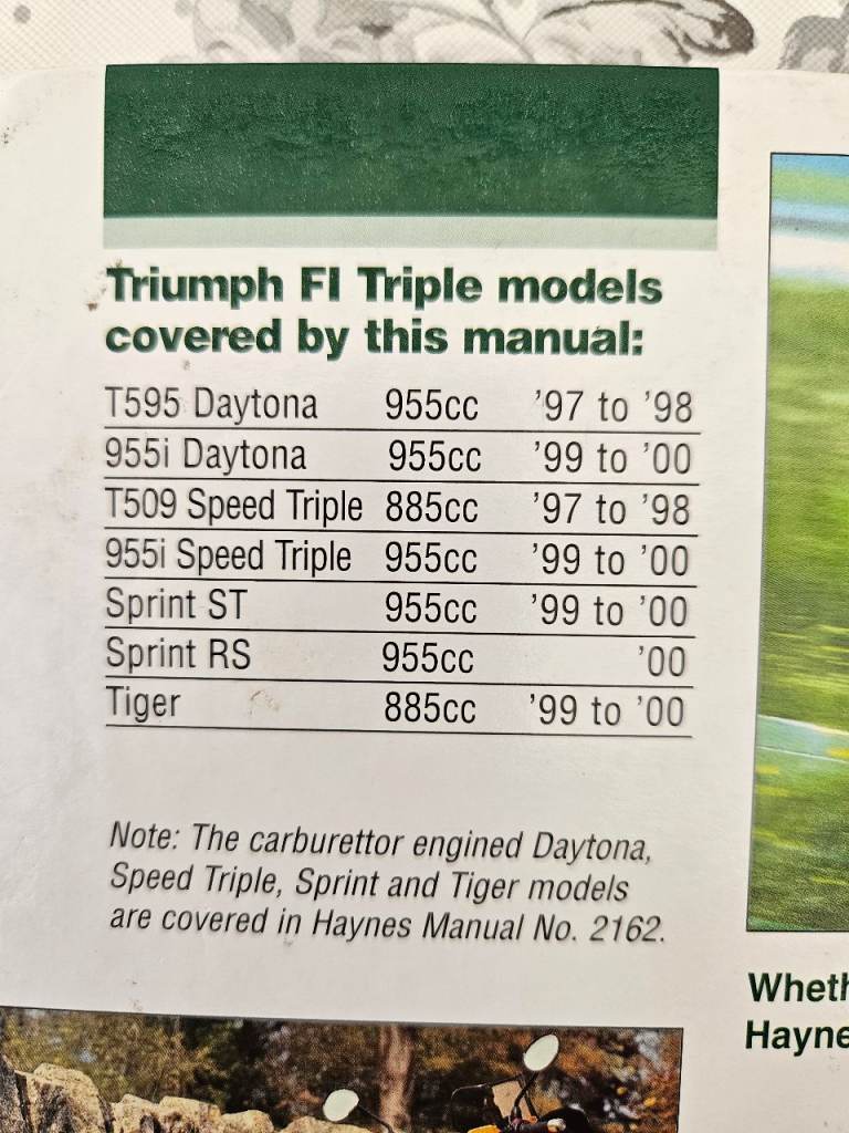 Posting for 11+ yearsTriumph Daytona Speed Triple Sprint & Tiger Haynes manual