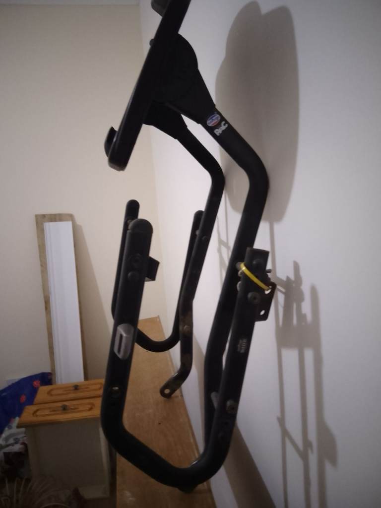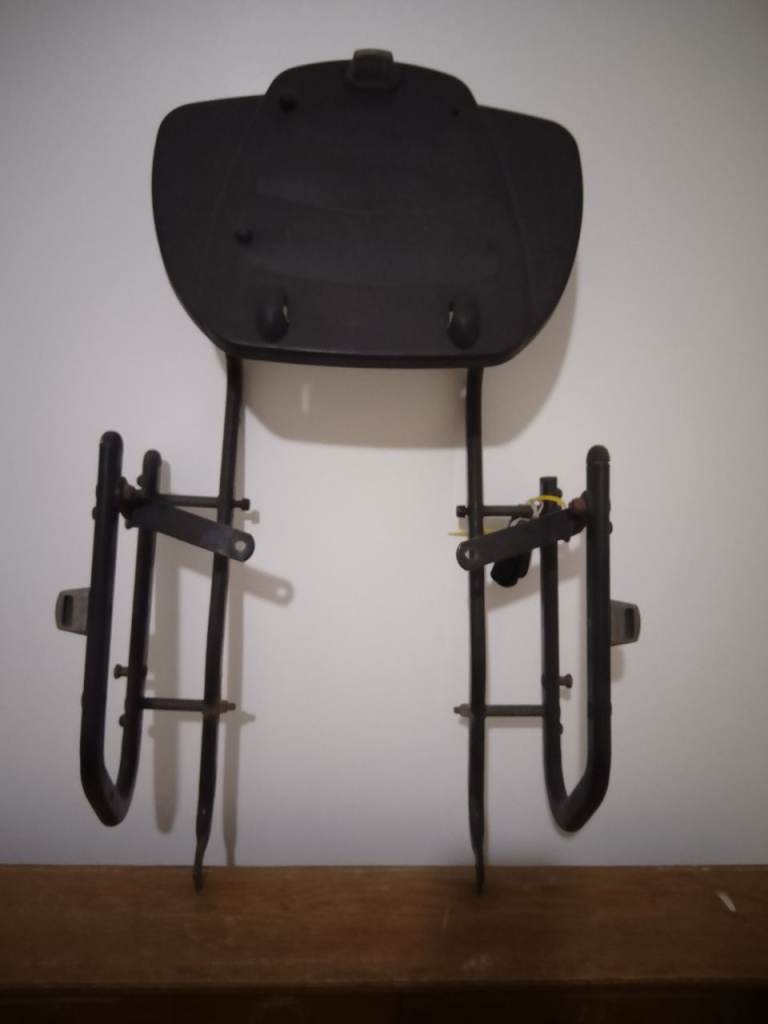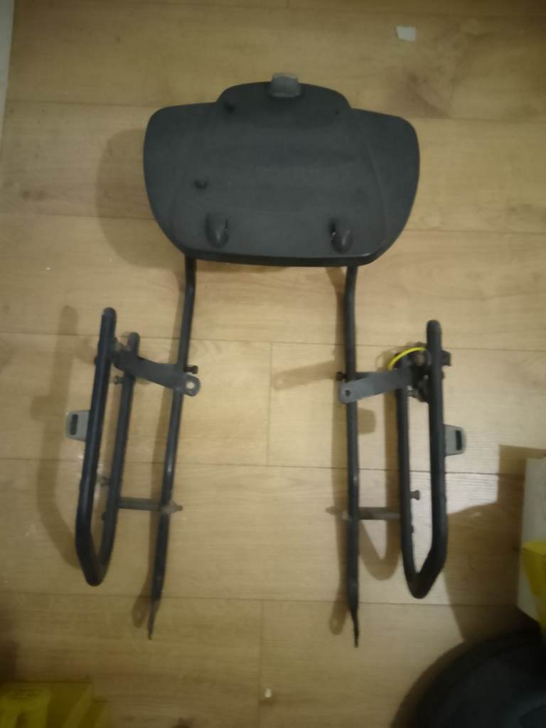 Triumph 900 sprint rack 1994 which is also a side pannier holder made by NONFANGO no cases included ,rack is in good condition with a couple of rusted bits which can be easily over painted ,this should fit all early Hinkley bikes from 1992 to 1997 including 750 Trident and others .If the grab handles are removed it bolts on easily with the lugs which are included and 2 lugs attach at the side .Leave a text or voicemail if you can't get me on the phone and I will get back to you. Thanks