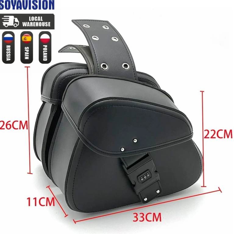 Cool looking saddle bag with combination lock for security. Will fit most bikes. Measurements in pictures.