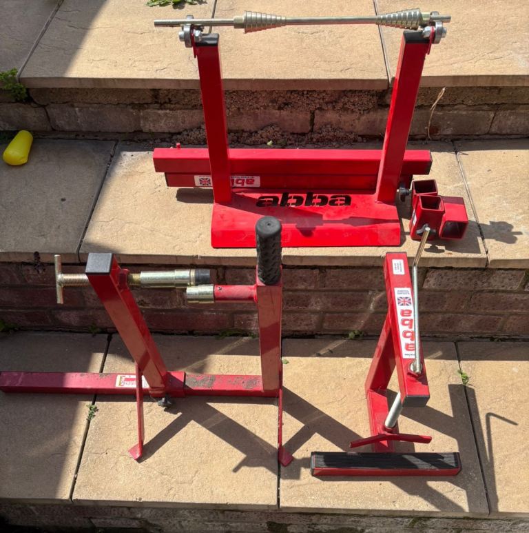Here I have unused Yamaha r1 abba stand wheel balancer and tyre changer all brand new never used only reason for selling is my wife won't let me buy a bike
