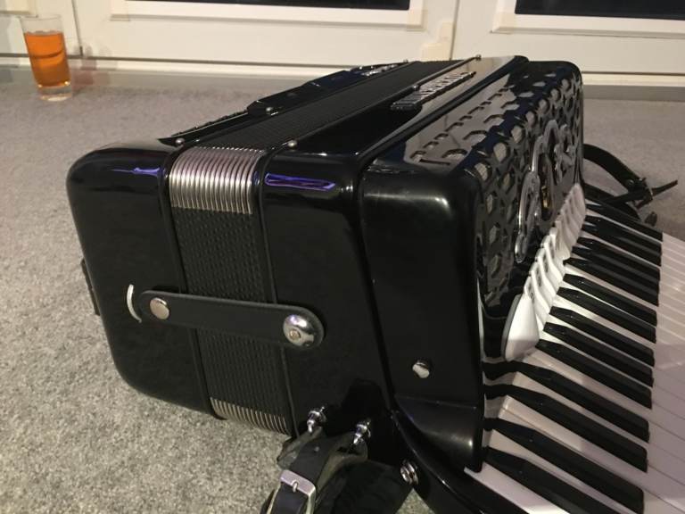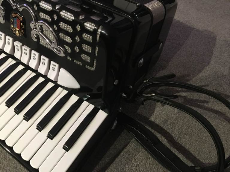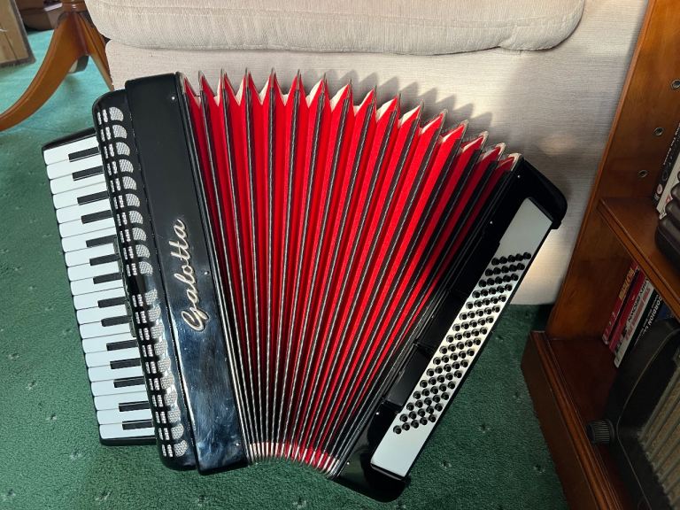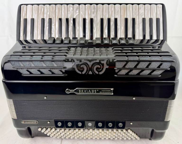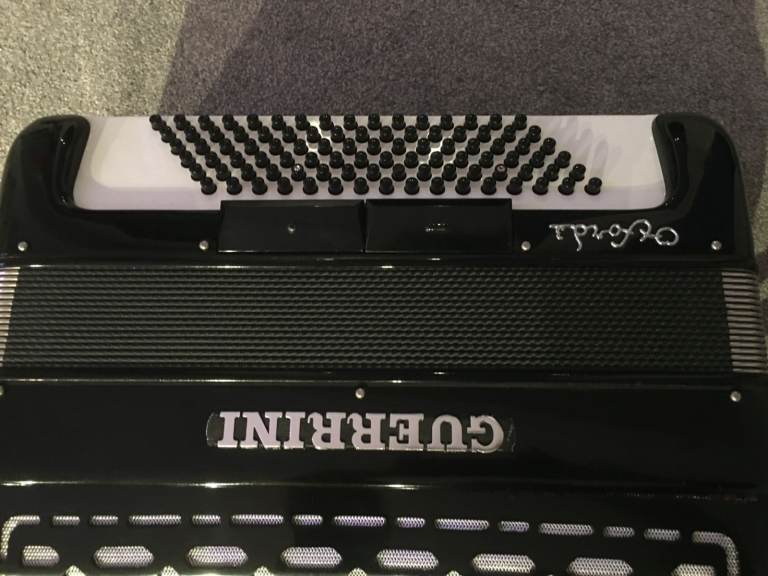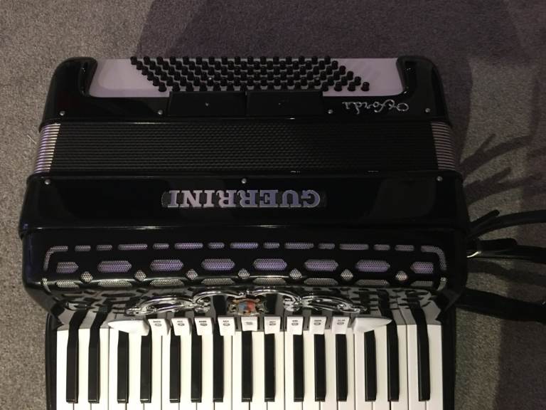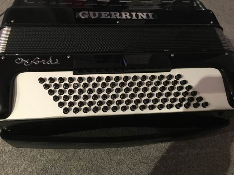 The Guerrini 96 bass 4 voice accordion comes with a case, making it convenient for storage and transportation. This piano accordion features 96 bass keys and 37 treble keys, providing a wide range of notes for playing various musical styles. With the renowned Guerrini brand behind it, this accordion is sure to deliver high-quality sound and performance for musicians looking to add a unique and authentic instrument to their collection.