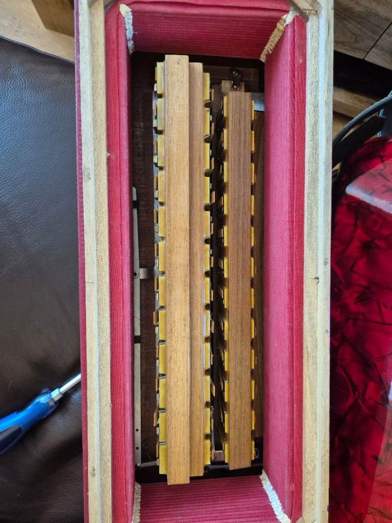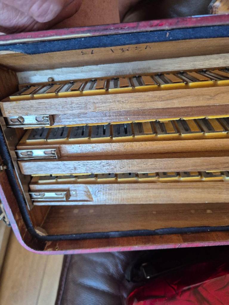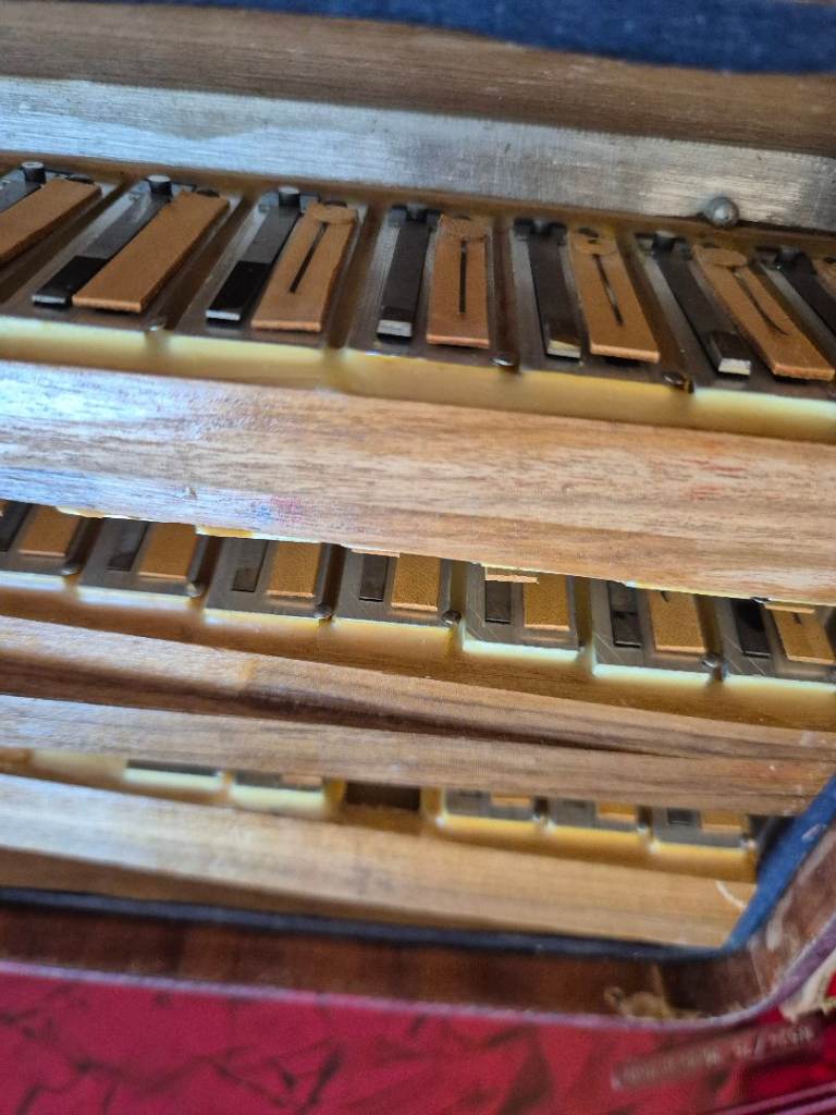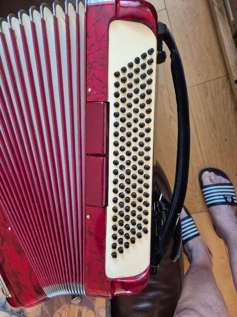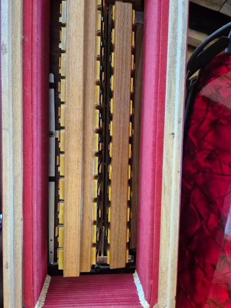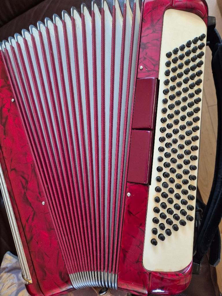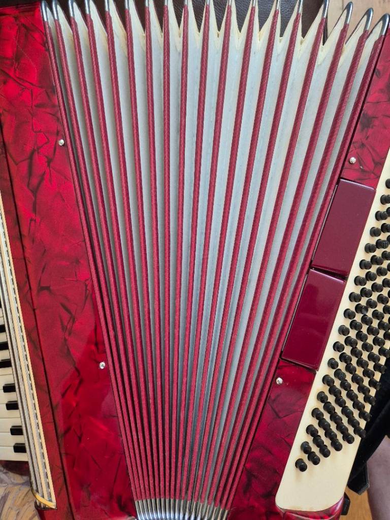 Accordion is in very good condition for its age. Its has 120 bass, 41 key, and 7 treble registers. 2 registers on the bass side. Bellows are in very good condition. No leaking. Tuning is perfect
