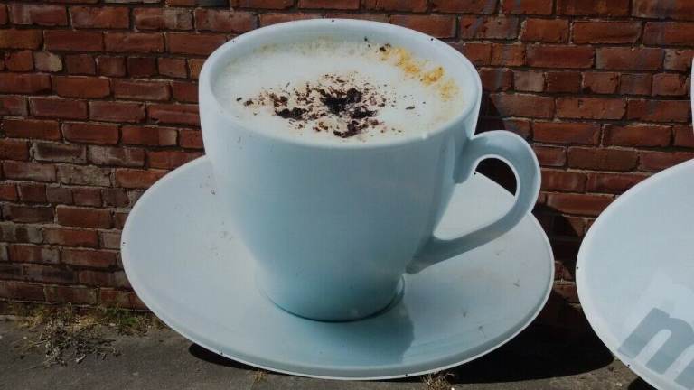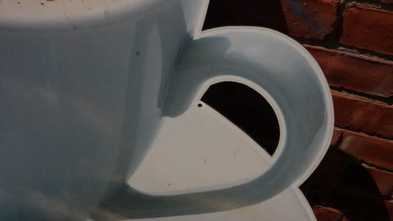 Coffee cup and saucer sign ( large) measures 50 inches high and 60 inches at its widest point, for outdoor advertising or could be used inside as a decorative piece, easily mountable with suitable wall fixings there are 2 available if needed, this listing is for one of them, can deliver Newcastle/Durham/Sunderland areas.
