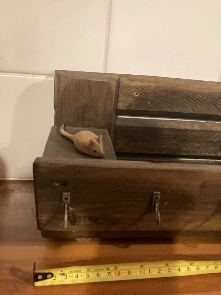 Large blackboard with mouse detail ideal shop cafe pub wedding.Last picture indicates size. Could possibly deliver if local. £75. Also wooden key holder mobile phone remote holder with mouse detail. £18.