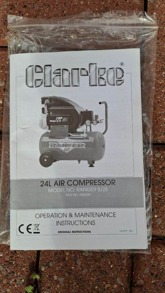 As New Clarke Ranger Air Compressor with Operation & Maintenance Instruction Booklet.