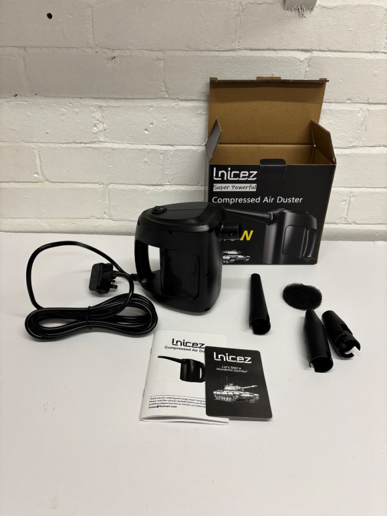 Get rid of dust and debris with this Inicez Super Powerful Compressed Air Duster! This 550W duster provides a strong blast of air, perfect for cleaning keyboards, electronics, and other hard-to-reach areas. It's a reusable and eco-friendly alternative to canned air. Keep your devices clean and functioning at their best with this powerful tool!
