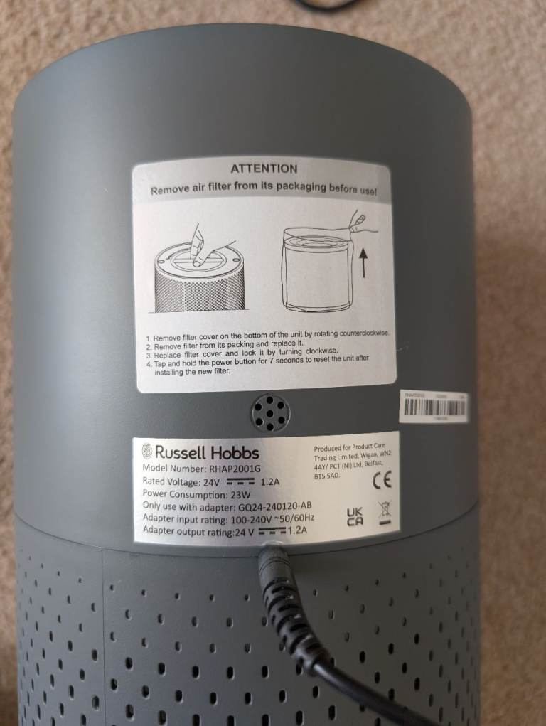 Russell Hobbs RHAP2001G Ozone Free Compact Air Purifier, 3-Layer Filtration – Removes up to 99.95% airborne allergens, dust, pollen, smoke & bacteria. Instruction booklet.