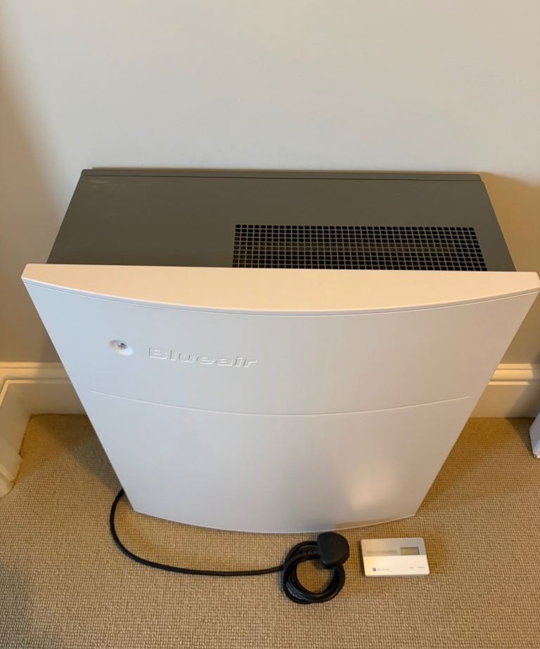 BlueAir 203 slim HEPA allergen/air purifier. Comes with a new Smokestop filter (worth £68 alone) which will last 6 months. Very quiet air purifier, good if you live near a busy road as the SmokeStop filters remove VOCs and fumes. Excellent condition.
