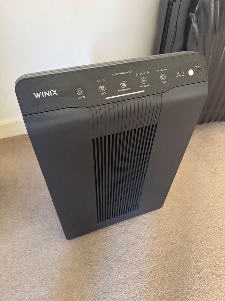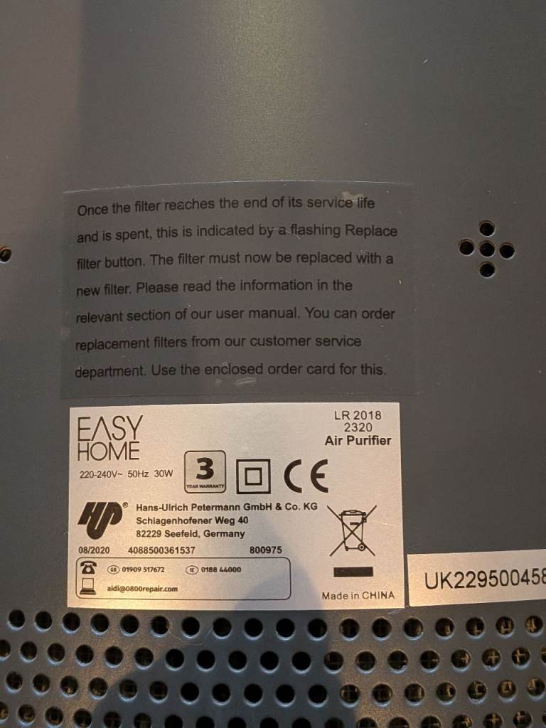 Nice air purifier. Low 30w output so cheap to run. It has manual control or auto control. It was bought, used for a month or so and put away so it's in good condition but has some light scratches on one side, as detailed in the pic. No user instructions but very easy to figure out.