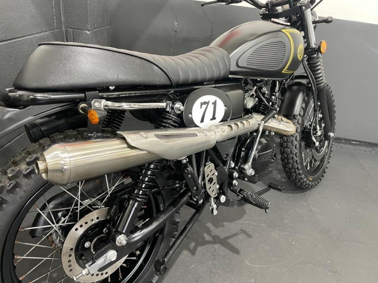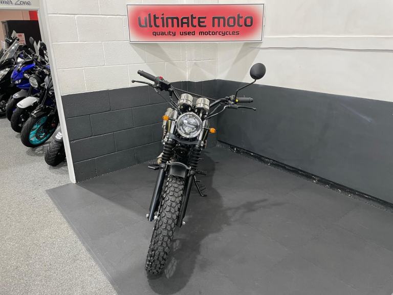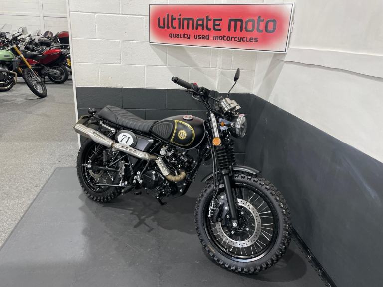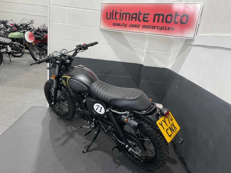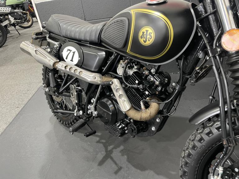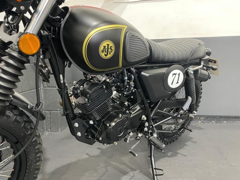 A Excellent Example Of The Sought After AJS '71 Desert Scrambler 125, Finished In Forged Matt Black. Featuring High Level Wrapped Exhaust System, Dual Sport Tyres On Spoked Wheels, Cross Bar, Smooth 4 Stroke Engine, Side Stand And Centre Stand, Classic Scrambler Styling, Tool Holder, Dual Rear Shocks, Electric & Kick Start, LED Lights. Ride From 17 With A CBT. If Less Than 6 Months Will Come With A Year MOT. Finance Available, Part Exchange Welcome, UK Mainland Sanitised Delivery Available From Only 156 Pounds, Warranty Extensions Available From As Little As £125 * Subject to T&Cs. For A Full Description Please Call Us On 0191 537 1848. For Sale Here At Ultimate Moto Along With Other Motorcycles Direct From Our Showroom. Call For an Appointment Before Travelling. More Bikes Available Online at [Website URL removed] Thanks. E&OE