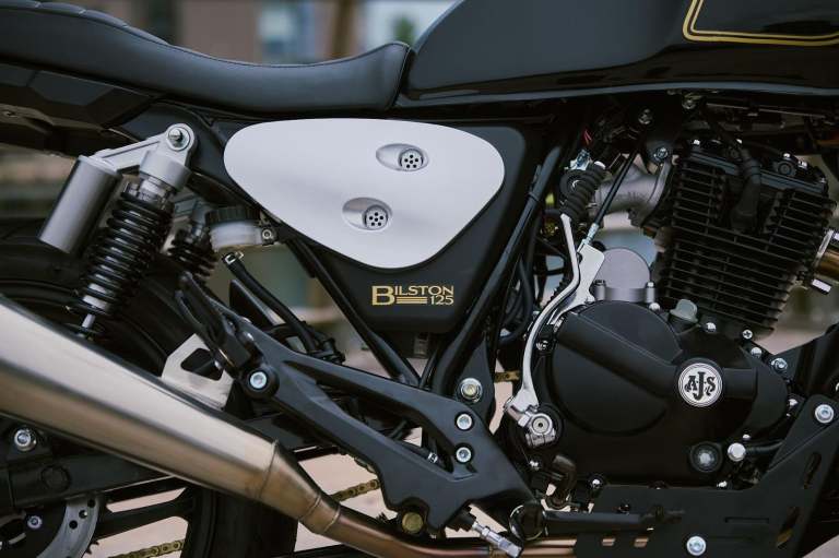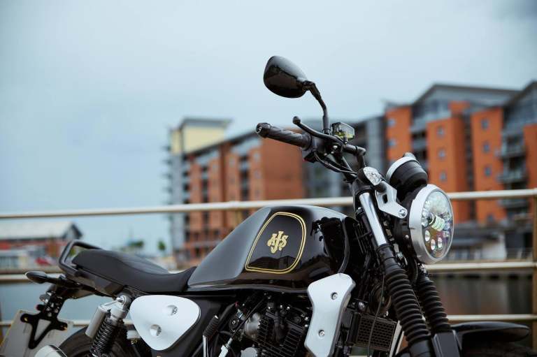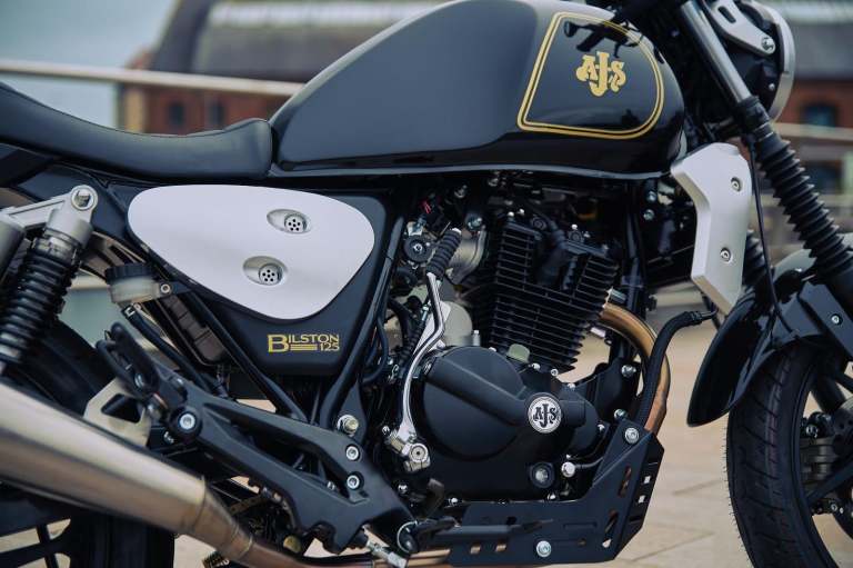 The Bilston will be available in 3 eye-catching colourways; Foundry Black, Ember Red and Steel Blue, all with the heritage gold detailing and AJS logo on the tank.