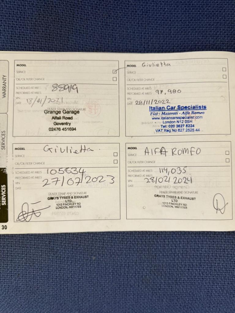This 2016 Alfa Romeo Giulietta TB QV Line boasts a recent service in February 2025 at 131,388 miles, CAMBELT Changed, offering peace of mind alongside its partial service history. This stylish hatchback features a 1.4L Euro 6 petrol engine, ensuring efficient performance. The QV Line trim level enhances its sporty appeal, and you'll appreciate the convenience of dual zone climate control, heated front seats, and automatic headlights with a dusk sensor. For an immersive audio experience, it includes a Hi Fi BOSE Sound System, and the steering wheel mounted paddles offer a more engaging driving experience.Experience impressive fuel economy with this Giulietta, achieving a highlight of 58 mpg, which is better than many similar vehicles. Its acceleration is also noteworthy, reaching 0 to 62 mph in just 7.6 seconds, demonstrating its spirited performance. Furthermore, this model offers generous boot space, making it a practical choice for everyday use and longer journeys. A 12 month MOT will be provided on purchase, and the vehicle comes with a 3 month warranty for added reassurance.We are an independent dealer based in Studley Warwickshire just 10 minutes from Junction 3 of the M42 . We have over 25 years experience and pride ourselves on our customer service. DRIVE AWAY INSURANCE AVAILABLE Most of our cars are sourced from Main dealers and NOT Auctions , ALL vehicles come with a comprehensive warranty which includes roadside assistance , Credit /Debit cards accepted, delivery available and booking an appointment is advised .