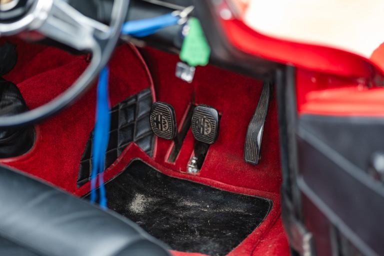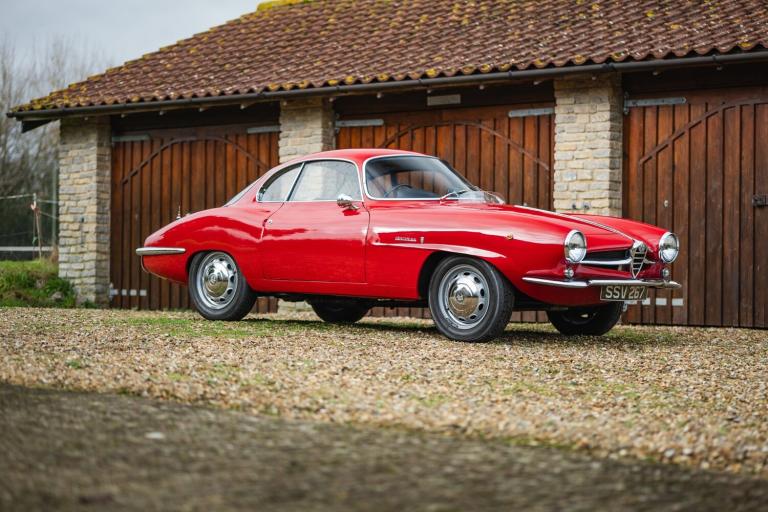 This Lot will be sold at auction at Symphony of Spring; Ascot Racecourse on Saturday 7th March. Extremely rare right hand drive conversion, one of c.25. Verified low-mileage example. Previously restored during long-term ownership. Introduced in 1963, the Giulia SS was essentially a larger engined version of the earlier Bertone-designed Giulietta SS, itself inspired by Alfa Romeos achingly beautiful Disco Volante. While Alfa Romeo developed the model over time, all Sprint Speciales adhered to a basic concept of lightness and aerodynamic efficiency, using both to extract maximum performance from the familiar four-cylinder, twin-cam Alfa Romeo engine.Built in January 1964 as a standard Giulia SS, this example became was a mere 25 Sprint Speciales supplied to Alfa Romeo UK in July that year, who in turn passed them to Ruddspeed to undertake factory-sanctioned right hand drive conversions. This officially-recognised modification makes this Giulia a very rare car indeed.Currently showing just under 63,000 miles and with its sixth owner, this Alfa Romeo comes with an extensive history file detailing work done over the years. Of particular note is the interior work by well-known specialist and Alfa Romeo enthusiast Anthony Coburn, who himself owned the car from 1979 to 2010, and also oversaw an extensive restoration by Benalfa Cars. The Giulia has subsequently entered numerous concours events and has been with its current custodian another Alfa-Romeo enthusiast - since 2022, though used very sparingly since then.Although it now counts as a slightly older restoration and does show a few very minor imperfections, there is no doubt this Sprint Speciale still presents excellently in red over black/red interior, the latter still a fine testament to Mr. Coburns work. Mechanically it has also been well cared for and is in superb fettle. Whether youre lusting for La Dolce Vita, or in dire need of some drop-dead automotive design, this Giulia Sprint Speciale is the answer, regardless of the question. Consigned by Charlie McCreery