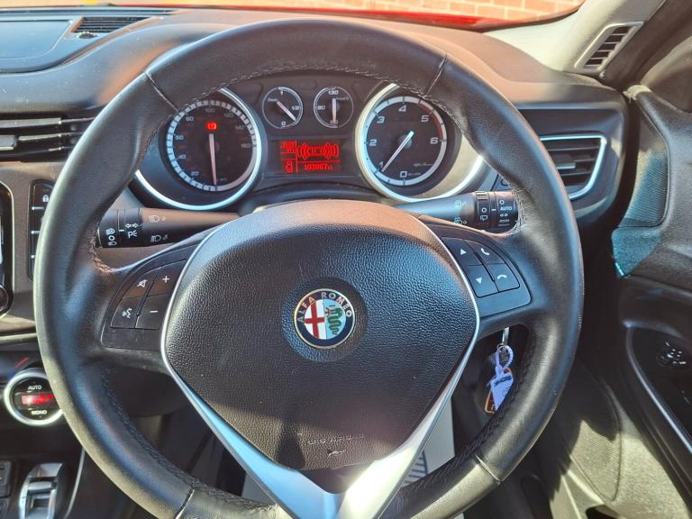 We are delighted to offer this lovely Alfa Romeo 1.6 JTD-M Business Edition 6 Speed Manual. Presented to you in classic Alfa red, with a contrasting anthracite cloth interior. The car has had just two owners from new, the last since January 2017. It has covered a genuine 103000 miles. This is backed up with a full service history consisting of 11 service stamps and invoices. The cambelt and waterpump were changed in February 2026, and it has just been serviced. The MOT expires April 2027. Specification includes; PAS, ABS, ESP, DNA drive mode select, front, side and curtain airbags, cruise control, dual zone climate control air conditioning, 4 x electric windows, electrically adjustable door mirrors with power folding, remote central locking, UConnect touchscreen sat nav, DAB/FM/AM radio, bluetooth phone and music streaming, USB and aux input, multi function trip computer, auto dimming rear view mirror, rain sensing wipers, auto headlights, tyre pressure monitoring, front centre armrest, 60/40 split folding rear seats with isofix points, 3 x 3 point seat belts and headrests, load cover, front and rear parking sensors, LED daytime running lights, front fog lights, alloy wheels, space saver spare wheel and tools, 2 x keys, handbooks and much more!. Road tax 20GBP per year. No ULEZ charge.This car is a nice, clean example that is in very good condition all round for its age and mileage. The bodywork is straight with no major dents or scrapes, and the paintwork has a good shine. The alloy wheels are tidy with good tyres all round with plenty of tread. The lights, glass and trims are also all in good, fault free condition. The interior is very clean with no undue wear and tear, including the luggage compartment. Mechanically it is all sound and fault free in every way. Also all electrical systems and equipment work without issue.In summary: A very nice, low owner, example of this characterful family car, with a very good service history. It is a pretty thing, but lively and economical, cheap to tax and with a great level of equipment. Fault free, maintained up to date and ready to go. A great diesel hatchback for very little money. Ready to drive away today!!