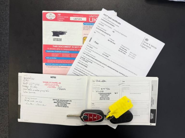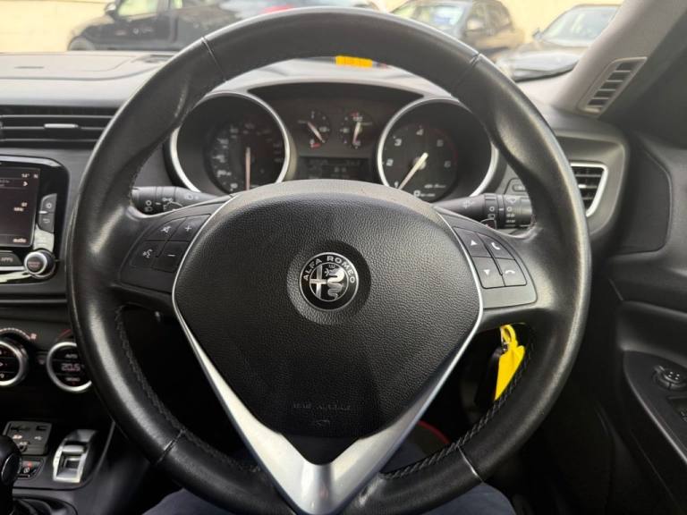 ULEZ friendly. New Cambelt and Water pump fitted. This fully automatic Alfa Guilietta Super is finished in Metallic Alfa Black with black perforated sports leather heated seats. It is fitted with power steering, Alfa u Connect phone, Sat Nav, DAB radio, remote locking, electric windows, cruise control, 17" Alloy Wheels with saver spare, SD Card, aux & USB ports, Rear PDC, LED day lights, dual zone air conditioning, natural/ all weather and dynamic mode driving modes and more. Supplied with two keys. It comes with an Alfa and independent service history done at 9421/17509/19816/28783/39172/51806 and 71247 miles. Cam Belt and water pump just replaced. We will supply it with a service, 12 months MOT and a 6 months RAC Insured warranty that can be extended. Finance is available from 9.9% APR subject top status. This Giulietta is superb throughout and is finished in what we believe to be the best colour combination. It will deliver economical automatic motoring and It has not been smoked in or carried pets. WHATSAPP Available 07967962192. For more information please visit [Website URL removed] or phone 01787 475329/07967962192, HIGH STREET LOCATION CARS UNDERCOVER IN SHOWROOM, p/x considered.16in Alloy Wheels - 7 Hole Design, 17in Alloy Wheels - Turbine Design, 6 Airbags - Driver-Passenger-Front Side and Window, 60-40 Split Folding Rear Seats, Airbags - Passenger Deactivation, Alfa Black, Alfa Code Immobiliser and Alarm System, Alfa DNA Driving Mode Selector, Armrest - Front with Storage, Bluetooth Handsfree, Body Coloured Bumpers, Chrome Window Surrounds, Climate Control - Automatic Dual Zone, Cruise Control, DAB Radio, Daytime Running Lights - LED, Door Mirrors - Electrically Adjustable and Heated, Door Mirrors - Satin Effect Housing, Electric Windows - Front and Rear, Electronic Key with Remote Central Locking and Boot Release, Electronic Q2 Differential, EPS - Electric Power Assisted Steering, Floor Mats, Front Fog Lights, ISOFIX Attachments for Child Seat Protection, Kick Plates - Aluminium, Leather Steering Wheel with Phone and Radio Controls, Lusso Pack, Matte Black Trim Inserts, Multifunctional Display and Trip Computer, Parking Sensors - Rear, Rear Cluster Lights - LED, Rear Spoiler, Safe Lock, Seats - Drivers Height Adjustment, Seats - Heated Front, Seats - Passenger Height Adjustment, Space Saver Spare Steel Wheel - 16in, Sports Dials with White Illumination, Sports Leather - Black, Steering Wheel - Paddles, Storage - Front Seat Back Pockets, TPMS - Tyre Pressure Monitoring System, Uconnect 5in Colour Touchscreen Infotainment System, Uconnect 6.5in Colour Touchscreen Navigation, VDC - Vehicle Dynamic Control