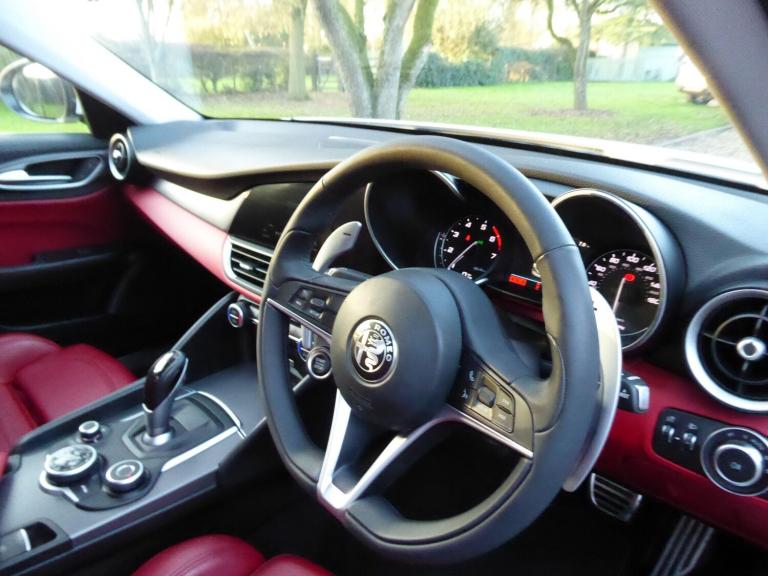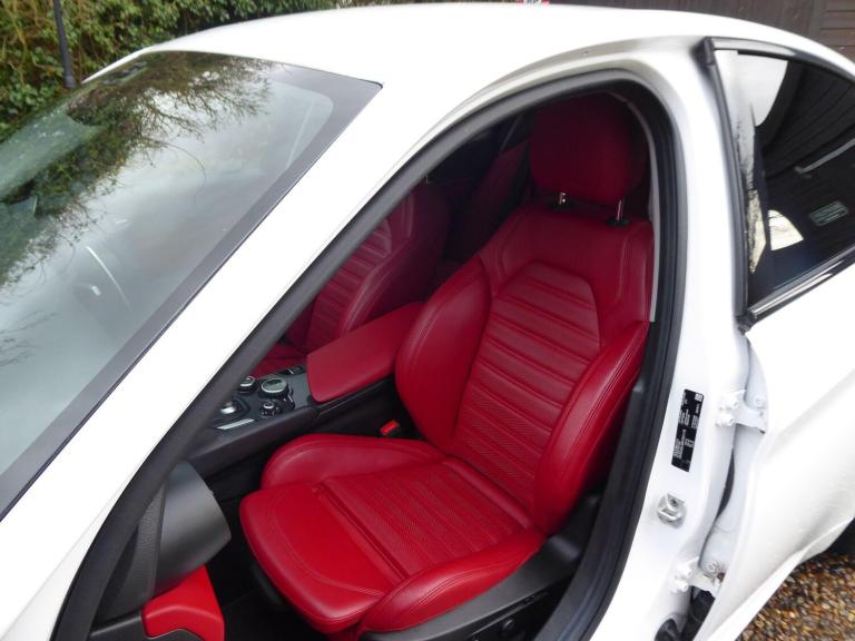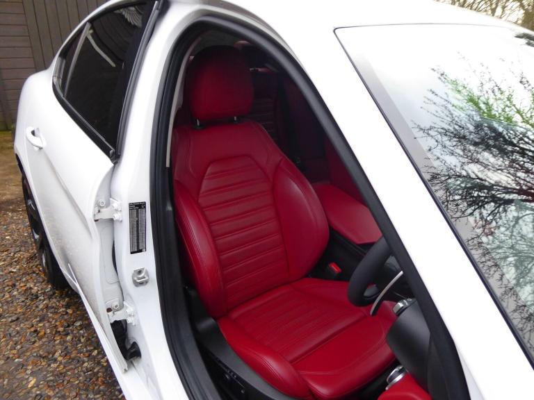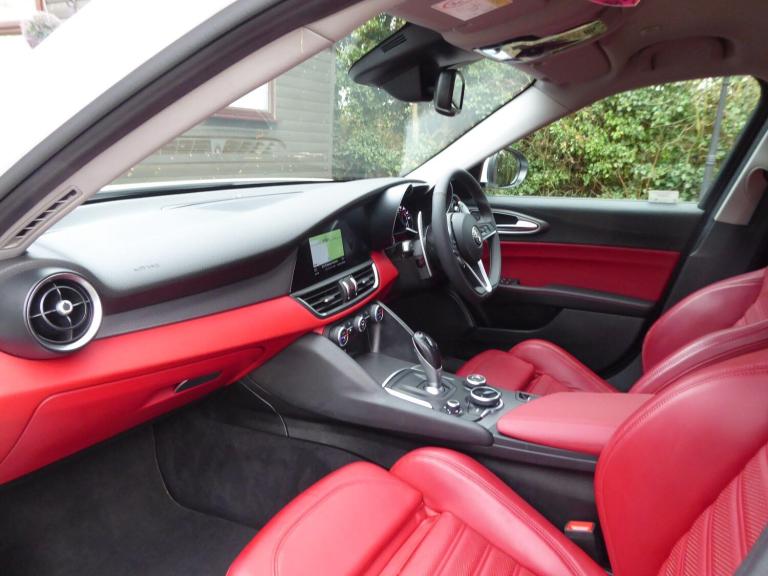 We are pleased to offer this great looking Giulia in the very Italian colour combination of bianco white with red full leather. Specification includes sat nav, apple car play/android auto, dab radio, bluetooth, heated electric seats, heated steering wheel, heated washer jets, folding mirrors, folding rear seats, auto lights and wipers, rear privacy glass and unmarked alloy wheels. Full Alfa service history and 2 x keys present. Call or visit our website for a finance quote (subject to status) No admin fees are charged. We specialise in privately owned high specification vehicles and endeavour to buy the best examples of the marques we sell. Old fashioned service with up to date product knowledge. 30 years of successful selling please check out our 5 Star reviews and buy with confidence. We would like to point out Autotrader's Price indicator is AI GENERATED and does not take into account many real world factors. We believe it is about selling the best we can which our vast knowledge affords us. Quality is the most important factor not buying the cheapest. As they say cheap today is dear tomorrow.