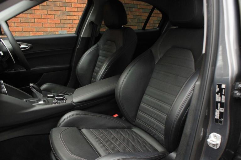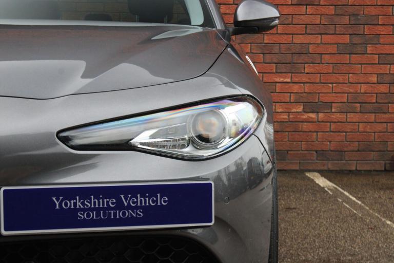 OVER 200 VEHICLES IN GROUP STOCK. Finished in Vesuvio Grey metallic with full black leather interior. Features include Cloverleaf pack 2, Alfa Connect navigation, 19” dark five hole alloy wheels, carbon fibre rear spoiler, heated steering wheel, front and rear park distance control, heated electric front sport seats with driver memory function, digital dual zone climate control with automatic air conditioning, Bluetooth connectivity with media streaming, DAB digital radio, automatic bi-xenon headlights with LED daytime running lights, rain sensor, cruise control, Alfa DNA driving mode selector, lane departure warning, electric folding exterior mirrors, rear privacy glass, keyless start, yellow brake calipers, heated washer nozzles, voice control, multifunctional leather steering wheel with paddleshift, automatic transmission plus much more standard specification. This low mileage Giulia Veloce is offered in excellent condition having covered only 33600 miles from new by its 1 former keeper. The car comes complete with a comprehensive service history consisting of the following - 08/05/2019 at 6315 miles, 11/06/2020 at 12218 miles, 01/05/2021 at 12886 miles, 18/01/2022 at 13876 miles, 04/04/2023 at 20807 miles and 01/07/2025 at 30943 miles. GOOGLE YORKSHIRE VEHICLE SOLUTIONS FOR OUR CUSTOMER REVIEWS. PLEASE CALL OR E-MAIL FOR FURTHER DETAILS OR TO ARRANGE A PERSONALISED VIDEO OR VIEWING. THIS DEALER HAS COMMITTED TO AA CARS STANDARDS AND IS APPROVED BY THE CHARTERED TRADING STANDARDS INSTITUTE.