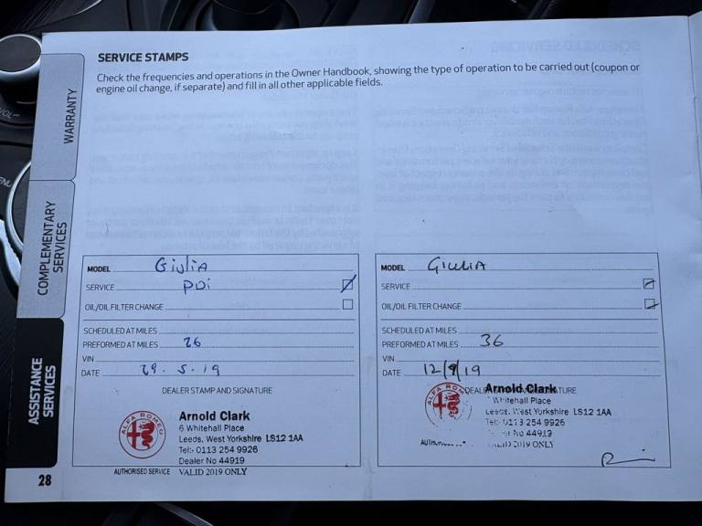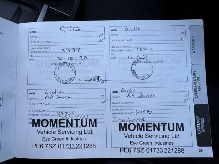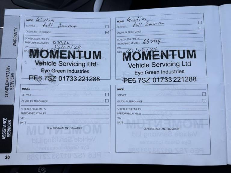 This 2018 Alfa Romeo Giulia TD Super presents a clear vehicle history, offering peace of mind alongside its stylish Italian design. Powered by a 2.2 litre Euro 6 diesel engine, this Super trim model combines performance with efficiency. Notable features include the Convenience Pack with keyless entry for effortless access, and the Driver Assistance Pack which incorporates front and rear parking sensors along with a rear camera to aid manoeuvring. Further enhancing its practicality are run flat tyres, 18 inch 10 spoke turbine alloy wheels, and versatile 40 20 40 split folding rear seats. Experience the impressive performance of this Giulia, accelerating from 0 to 60 mph in just 7.2 seconds, a testament to its dynamic engineering. This model also stands out with its exceptional fuel economy, achieving an impressive 67 miles per gallon, and benefits from low CO2 emissions and a low insurance group, indicating it is a more economical choice compared to similar vehicles..17in Alloy Wheels - 10-Spoke, 6 Way Manual Front Seats, 8 Speaker Audio System, ABS - Anti Lock Braking System, Airbags - Driver, Airbags - Front Side, Airbags - Passenger, Airbags - Passenger Deactivation, Alfa Connect 3D Nav 8.8in Infotainment System, Alfa DNA Driving Mode Selector, Alfa Rotary Pad, Auto Headlights, Auto Windscreen Wipers, Autonomous Emergency Braking - AEB, Black Painted Interior Bezels, Black Window Surrounds, Brake Calipers - Aluminium, Climate Control - Dual Zone, Cruise Control, DAB Radio, Dual Chrome Exhaust Tip, ESC - Electronic Stability Control, Electric Parking Brake, Electric Windows - Front and Rear, Engine Start Button on Steering Wheel, Fix and Go Puncture Repair Kit, Forward Collision Warning - FCW, Front Passenger Sun Visor with Mirror, Halogen Headlamps and Daytime Running Lamps, Head Restraints - Third Rear, Integrated Braking System - IBS, LED Tail and Brake Lamps, Lane Departure Warning - LDW, Leather Multi-Function Steering Wheel, Parking Sensors - Rear, Perimeter and Volumetric Alarm System, Power Steering, Remote Central Locking, TPMS - Tyre Pressure Monitoring System, Tyre Repair Kit, 18in Alloy Wheels - 10-Spoke Turbine, 40-20-40 Split Folding Rear Seats, Alfa White, Cloth-Leather - Black, Convenience Pack, Driver Assistance Pack, Gear Shift Paddles on Steering Wheel, Run Flat Tyres