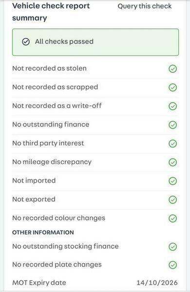 Our vehicle history check is provided for guidance only. Please check all the details with the seller before purchasing