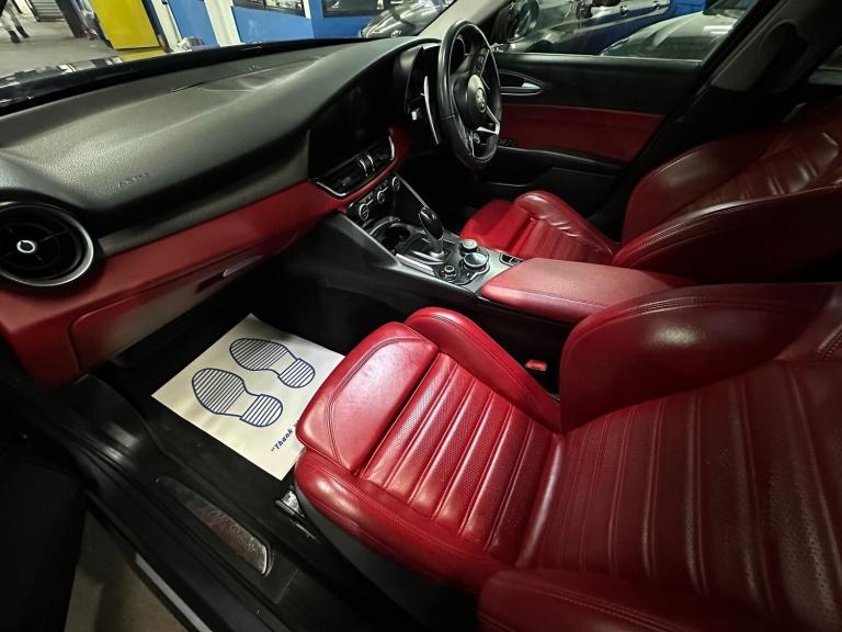 This 2019 Alfa Romeo Giulia T Veloce boasts an exceptionally low mileage of just 37,400 miles, a testament to its careful ownership. This Euro 6 compliant 2.0 litre petrol model comes with a full service history, with its last service completed on 30th December 2025, and will be supplied with a 12 month MOT for your peace of mind. The Veloce trim level is further enhanced by the Driver Assistance Pack Plus, which includes blind spot assistance, front and rear parking sensors, and a rear camera, alongside a Performance Pack. You'll also find striking red brake calipers, heated front seats for comfort, and 6 way power adjustable front seats with memory function. A 3 month warranty is included for added reassurance.Experience exhilarating performance with this Giulia, capable of accelerating from 0 to 62 miles per hour in a swift 5.7 seconds, a figure that highlights its dynamic capabilities compared to other vehicles in its class. The combination of its potent engine, sophisticated handling, and the comprehensive suite of driver aids and comfort features makes this Alfa Romeo Giulia T Veloce a truly compelling proposition for those seeking a blend of performance and refinement.