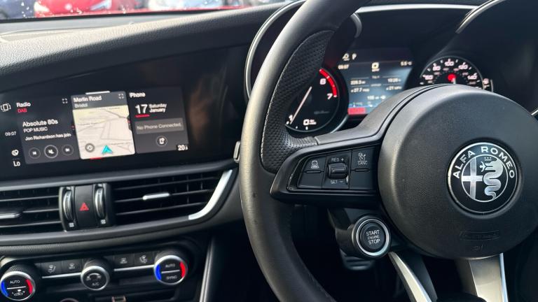 12v Power OutletAlfa Connect 3D Nav 8.8in Multi-Touch Infotainment SystemAlfa Connect ServicesApple CarPlay and Android AutoConnectivity - USB & Aux-in Armrest PortsDAB RadioEuropean MapsRear USB PortTMC - ProUSB - Front Centre ConsoleWireless Charging PadActive Cruise ControlFront and Rear Parking SensorsLane Departure Warning - LDWRear Backup CameraTPMS - Tyre Pressure Monitoring System18in Alloy Wheels - 10 Dark-Spoke TurbineBadge - SprintBumpers - Sports FrontDark Finish Exhaust FinisherDark Finish Giulia BadgeDark Finish V GrilleDark Tinted Rear WindowsDual ExhaustElectric Windows - FrontElectrically Adjustable and Power Folding Door MirrorsExterior Door Handle Courtesy LightsFix and Go Puncture Repair KitHeated Washer JetsKick Plates - AluminiumMonochrome Central Wheel CapsOutside Rearview Mirror - Electrochromic AutodimmingAutomatic High Beam SystemBi-Xenon Headlights - 25WDusk SensorHeadlamp - Adjustment40-20-40 Split Folding Rear Seats7in Colour TFT Instrument ClusterAdditional SoundproofingAlfa Connect BoxAluminium Interior InsertsAluminium Shift Paddles on Steering ColumnAluminium Sports Pedals and FootrestAQS - Air Quality SystemClimate ControlDNA UnlatchedDriver Seat - 6-Way ManualDriver Side Sun Vision with MirrorElectrochromic Rear View MirrorFloor MatsFront Courtesy Map LampsFunctional LED LightingHead Restraints - Third RearHeadlining - DarkPassenger Seat - 6-Way ManualRain Sensing WipersRear Air VentsSatin Finish Speaker SurroundSports Leather Gear StickSporty Leather Wrapped Steering WheelSteering Wheel ControlsPower SteeringABS - Anti Lock Braking SystemAirbags - DriverAirbags - PassengerAlarm System with Bonnet and Intrusion ProtectionAutonomous Emergency Braking - AEBBelly PanFront Airbag Deactivation on Passenger SidePassive EntryRemote Central Door LocksSeat Belt Reminder