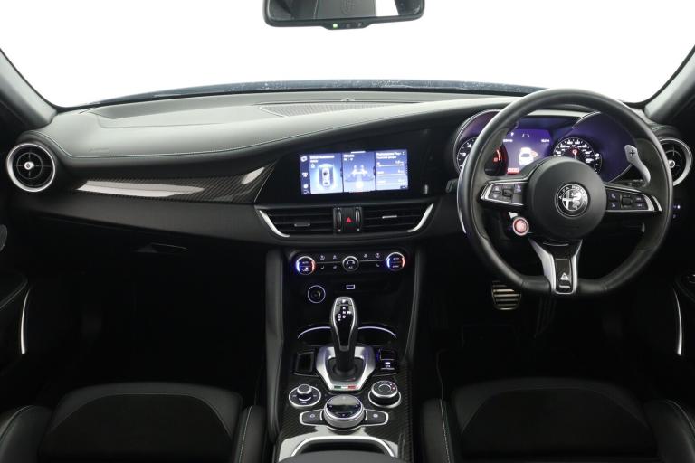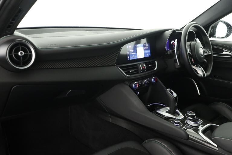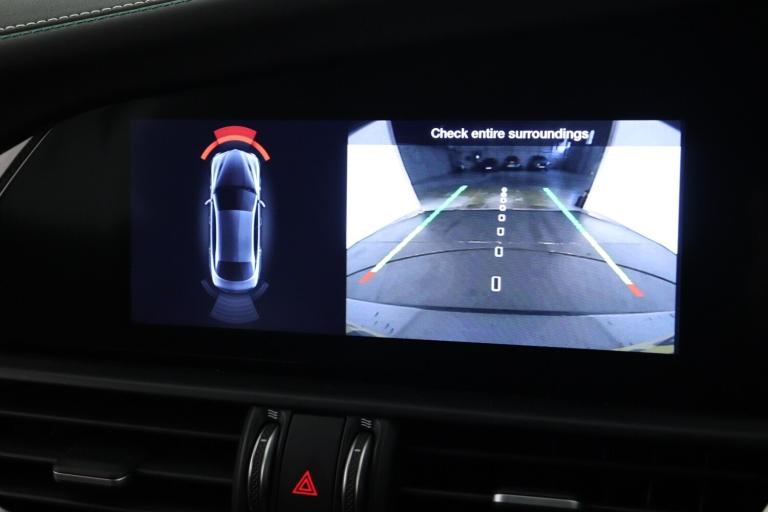 ..7 - inch colour TFT instrument cluster, Active cruise control, Alfa connect box, Alfa connected services, Alfa DNA Pro (with race mode), Alfa multi touch 3D Nav 8.8'' Infotainment system (radio, 3D Nav, MP3, aux-in, bluetooth), Apple car play/Android Auto, Drive mode selector, Electrically operated tailgate, European maps, Forward collision warning, Front and rear parking sensors, Lane departure warning system, Noise reduction kit, PAS, Rear view camera with dynamic grid lines, Stop/start system, TMC Pro, Trip computer, Wireless charging pad, Alfa Chassis Domain Control, Alfa synaptic dynamic control suspension, Audio system with 8 speakers, Digital Audio Broadcast radio-DAB, Rear USB port, Satin finish speaker surround system, Steering wheel mounted audio controls, USB and Aux in armrest, USB in front centre console, Alfa Active aero, Auto dimming electrochrome door mirrors, Auto headlights, Auto high beam, Bi-Xenon 35W headlamps + AFS, Carbon fibre boot spoiler, Carbon fibre interior accents, Carbon side skirts, Covered underbody, Dark finish Giulia badge, Dark finish V grille, Dark tinted rear windows, Dual chrome tipped exhausts, Dusk sensor, Electrically adjustable and folding door mirrors, Electrochrome rear view mirror, Exterior door handle courtesy lights, Front fog lights, Headlamp washer, Heated washer jets, LED DRL, LED tail and brake lights, Privacy glass, Quadrifoglio badge, Quadrifoglio sports bumpers, Rain sensor, Rear boot, Rear diffuser, Rear side wing doors, Rear wing door, Sports exhaust with quad tailpipes, Window surrounds gloss black, 12V power outlet, 2 individual rear seats, 3 rear headrests, 40:20:40 split folding rear bench seat, 6 way power driver seat with memory and 4 way lumbar adjustment, 6 way power passenger seat and 4 way lumbar adjustment, Additional soundproofing, Aluminium shift paddles on steering column, Aluminium sports pedal and footrest, AQS Air quality system, Bag hooks, Black painted interior bezels, Boot light, Cargo net, Dark roof lining, Door sill scuff plates, Driver sunvisor with mirror, Dual zone automatic climate control with AQS, English handbook, Floor mats, Front courtesy map lamps, Front headrests, Front passenger seat, Functional LED lighting, Heated front seats, Heated steering wheel, Power bolster, Quadrifoglio Leather/Alcantara flat bottomed sports steering wheel with carbon fibre insert, Rear air vents, Red Start button on steering wheel, Sports leather gear knob, Trunk hooks, Ambient light